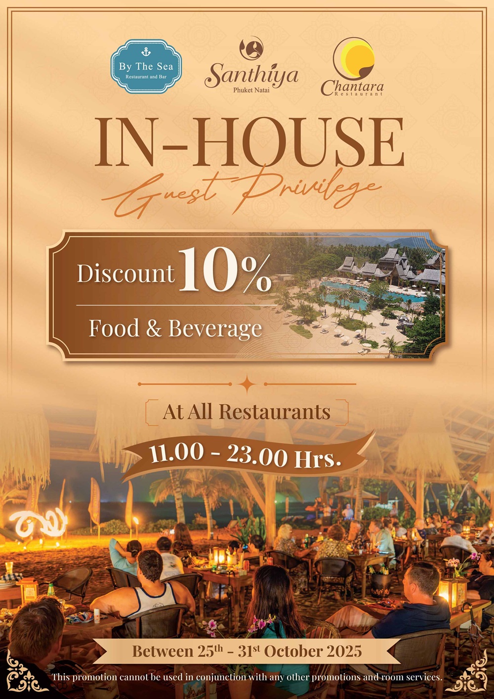 Enjoy a 15% discount with our exclusive In-House Guest Privilege.