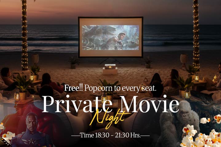 Experience cinema under the stars with the sound of gentle waves as your soundtrack. Tonight, let’s venture into a world of imagination in an intimate private setting right on the beach.
