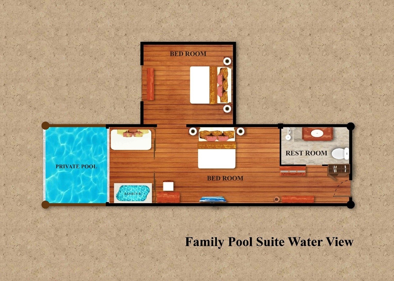 This spacious suite features calming views of the serene canal and your private pool. Designed for both comfort and connection, the primary bedroom and secondary bedroom are divided by a shared wall, ideal for families who prefer a sense of separation while still staying naturally connected. The tranquil canal reflects the richness of the surrounding nature, an authentic symbol of Koh Chang’s timeless beauty.
